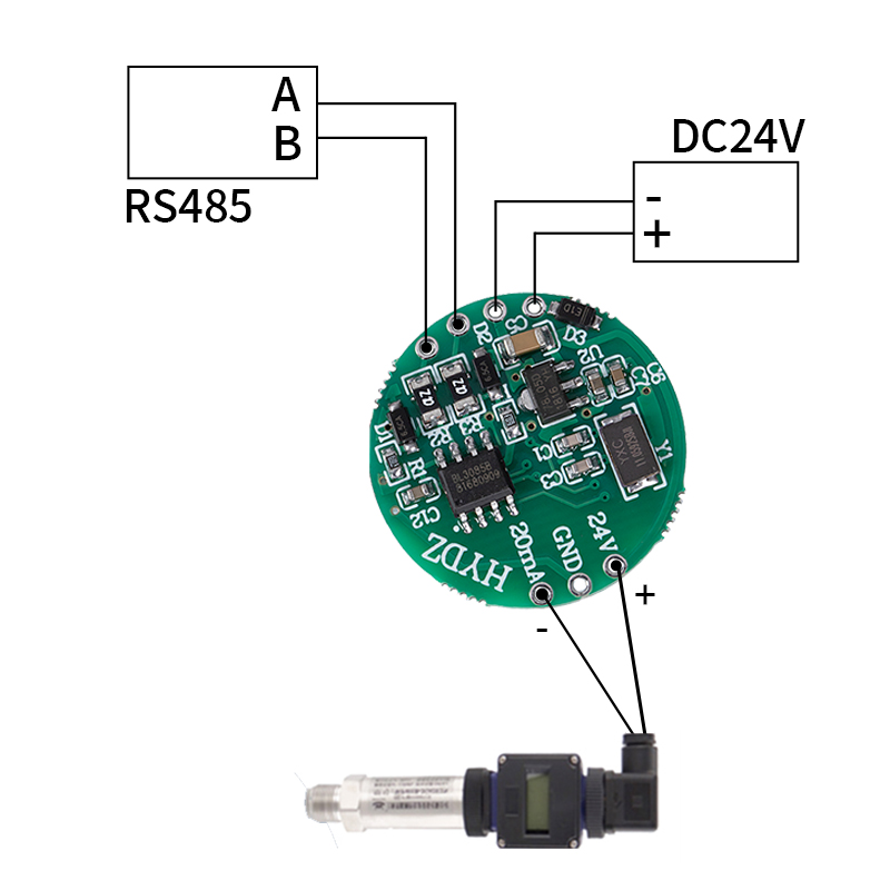 說明:1,2腳接電源輸入,電源輸入范圍9~35V;5腳24V為電源輸出正,給傳感器供電;二線制4-20mA傳感器,正極接5腳,負極接7腳。