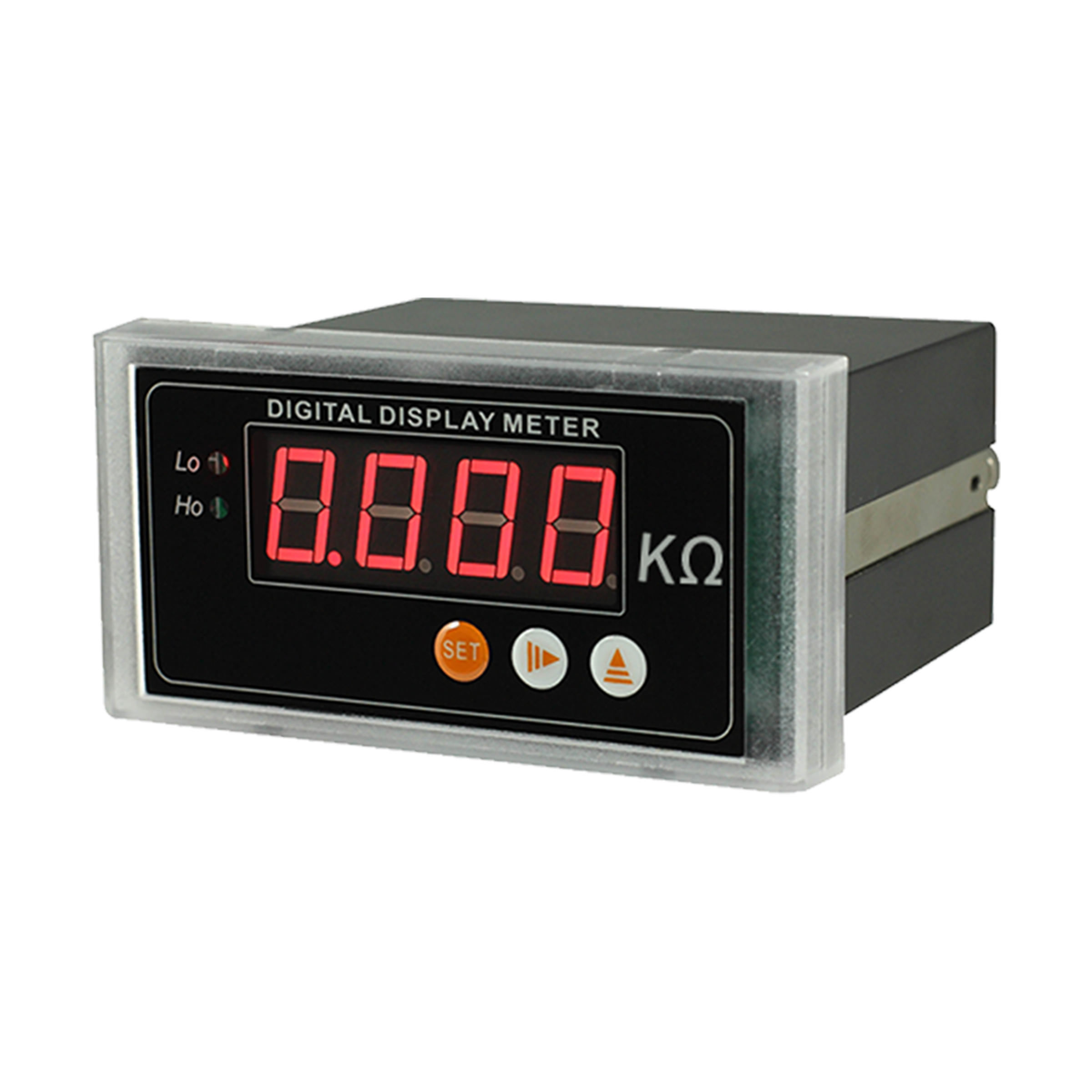 一個(gè)電阻量程5KΩ,對應(yīng)長度900mm位移傳感器,配一個(gè)電阻量程5KΩ電阻表,設(shè)置:顯示小數(shù)點(diǎn)位Dot=1,最小輸入信號對應(yīng)顯示值NNIn=000.0,最大輸入信號對應(yīng)顯示值NNah=900.0,顯示長度最小分辯率為0.1mm,儀表顯示和傳感器實(shí)際長度對應(yīng)。